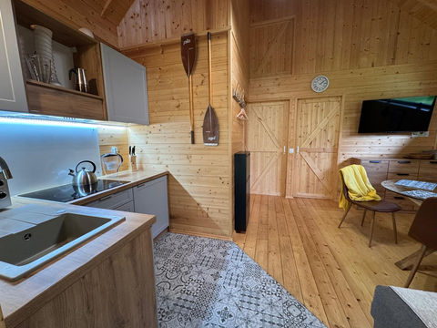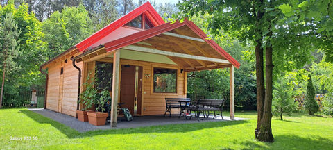 Domek Wędkarza to piękny, drewniany domek z otwartym sufitem, dzięki czemu poczujesz w nim przestrzeń. Powierzchnia domku to 35m2. Posiada dwie oddzielne sypialnie. Ugości do 6 osób.